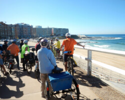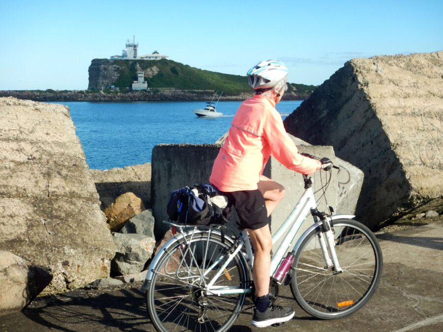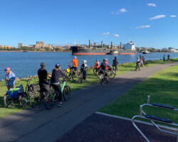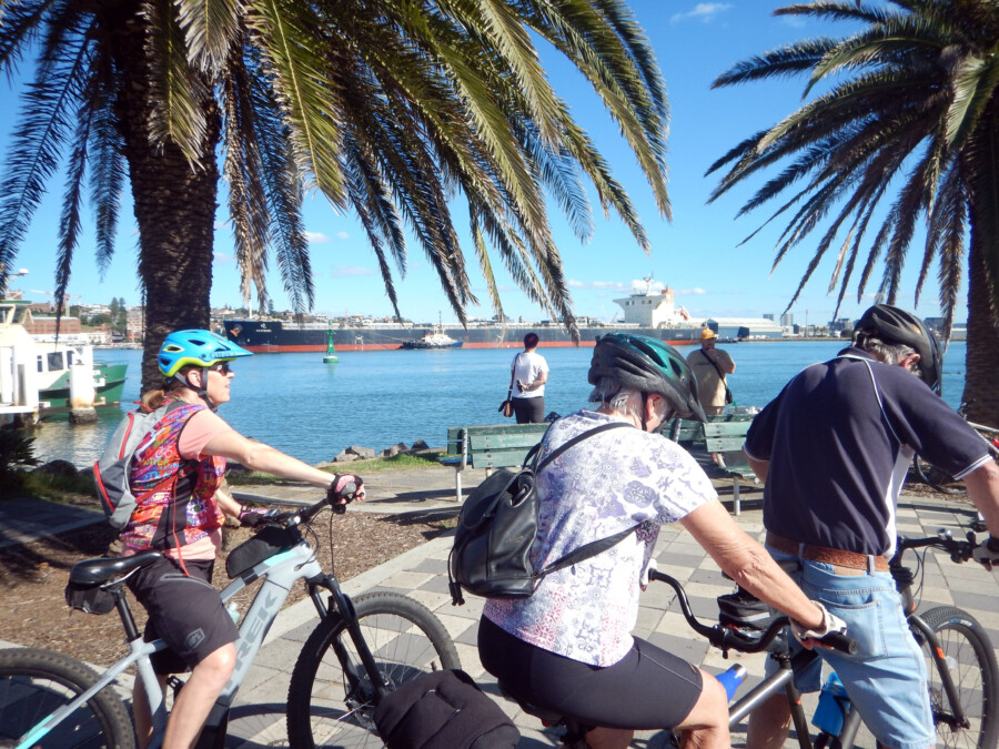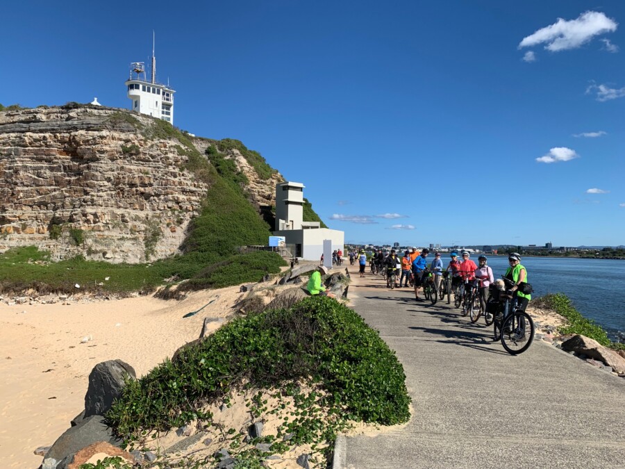 Lake Macquarie - Merewether Beach Pool to Hunter Wetlands at Stockton Bridge. A scenic ride past 3 Newcastle beaches to Nobby's Lighthouse and the breakwater, then along side the Hunter River to the Stockton Ferry. We explored Stockton, the Hunter Wetlands and the northern breakwater before returning to the ferry and heading back to Merewether.