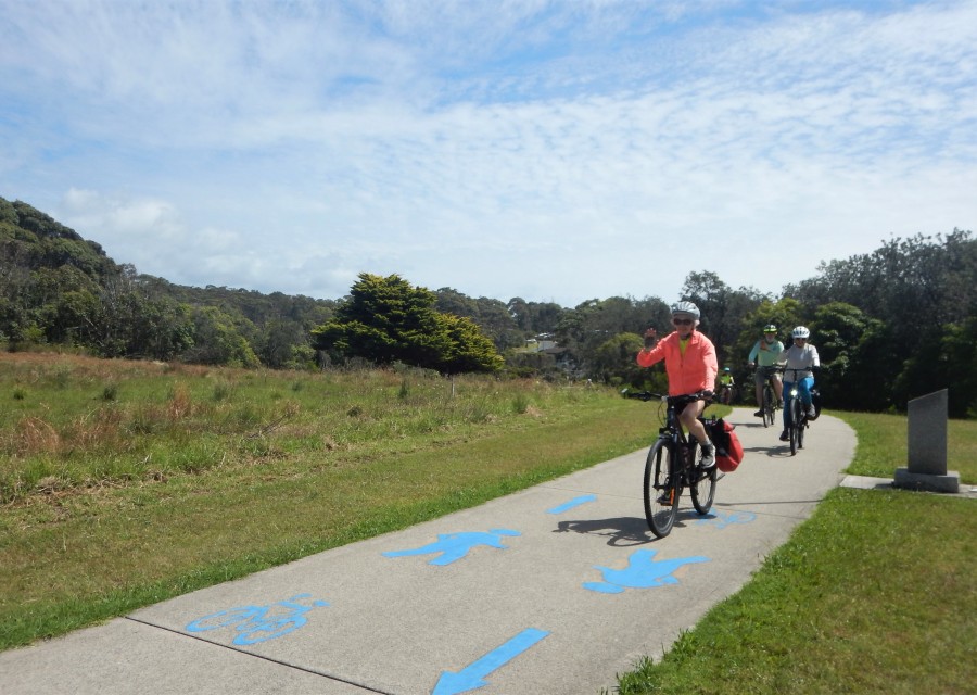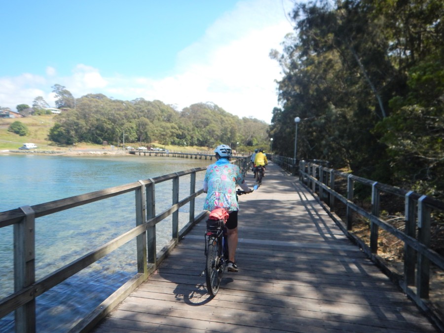 Gallery To see all our photos back to 2017 click on Facebook. « back to albumNarooma cycling trip: Monday 11 November - Narooma to Dalmeny Beautiful view - we could see Montague Island in the distance to the southNorthern breakwall of Wagonga InletMill Bay boardwalkAustralia rock on the south side of Wagonga InletBarefoot bowls in the afternoon. Jill was the champion!