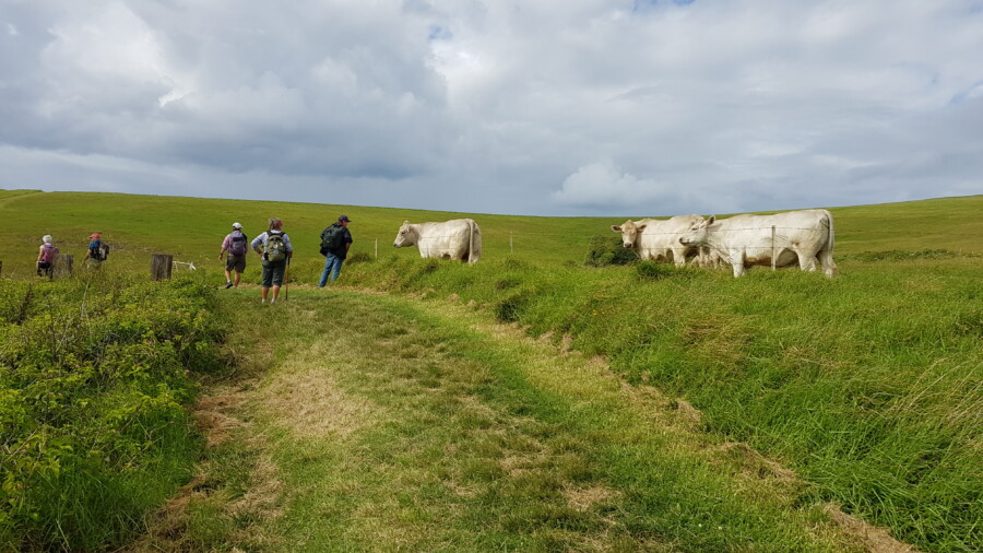 Spectacular views along grassy track, Some ups and downs.